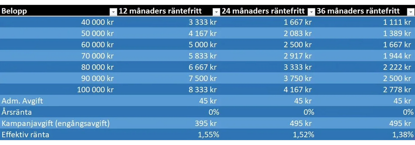 Uima-altaan ja uima-altaan peitteen ostaminen kerralla voi olla kallista. Jaa maksu pienempiin eriin käyttämällä Pooltimesin yhteistyötä Wasa Kreditin kanssa. Tarjoamme korottomia maksueriä jopa 24 kuukauden ajan ja 100 000 SEK yhteistyössä Wasa Kreditin kanssa.