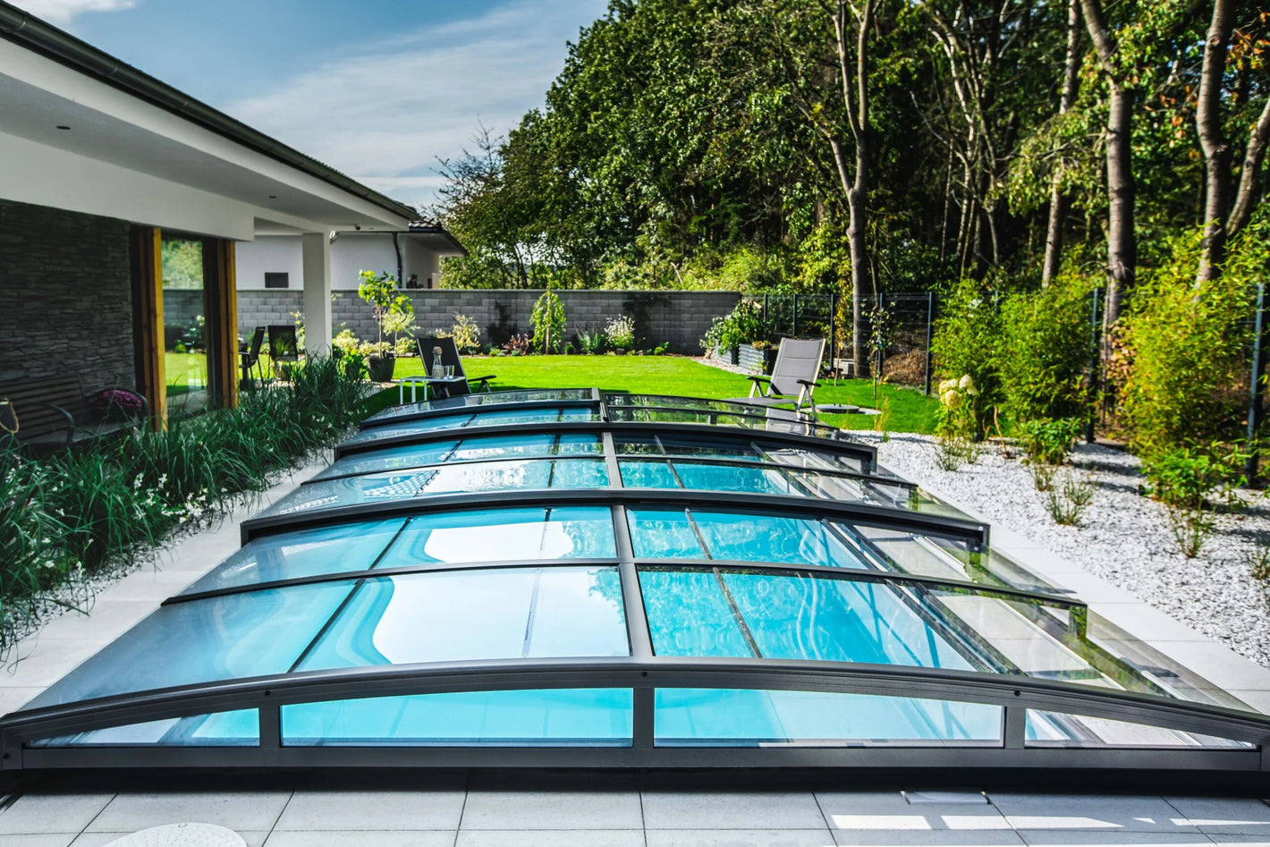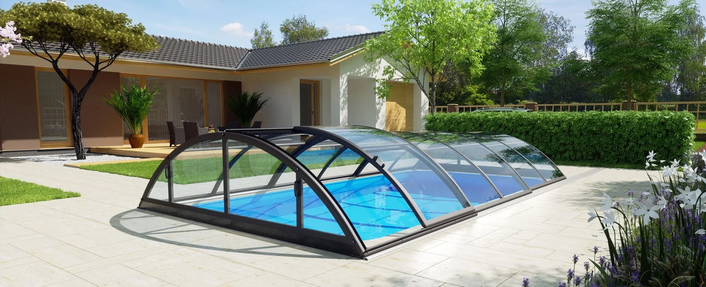 Icon KIT on erittäin matala uima-altaan katos, jossa on kirkas muovi ja pulverimaalatut antrasiitinväriset alumiiniprofiilit. Uima-altaan katos on saatavana kolmessa koossa, mutta se voidaan myös tilata mittatilaustyönä. Icon KIT:n etuna on, että kiskojen asennus on helppoa. Kaikki kiskot toimitetaan yhtenä kappaleena, eikä useita kiskoja tarvitse asentaa vierekkäin. Uima-altaan katos toimitetaan 3 mm kirkkaalla muovilla.