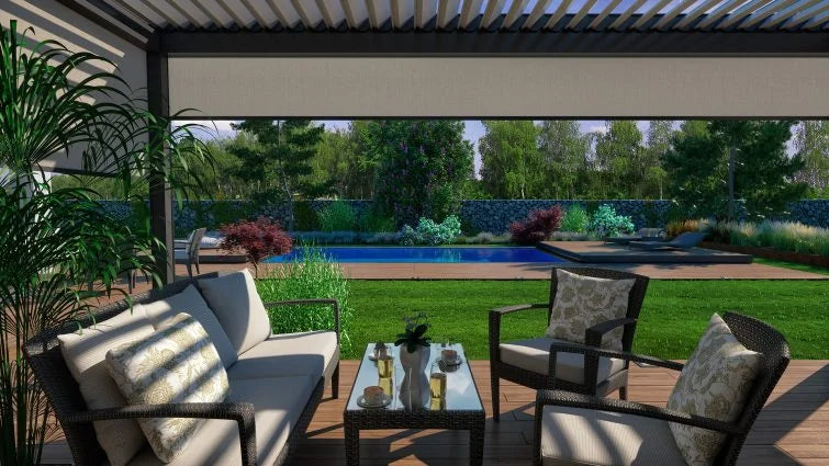 Moottoroitu toiminto lisää myös turvallisuutta, sillä voit nopeasti sulkea terassin, jos lapsia tai lemmikkejä on uima-altaan läheisyydessä. Tämä tarjoaa lisäturvallisuustason, jossa teknologia ja muotoilu toimivat yhdessä luodakseen turvallisen ympäristön koko perheelle.
