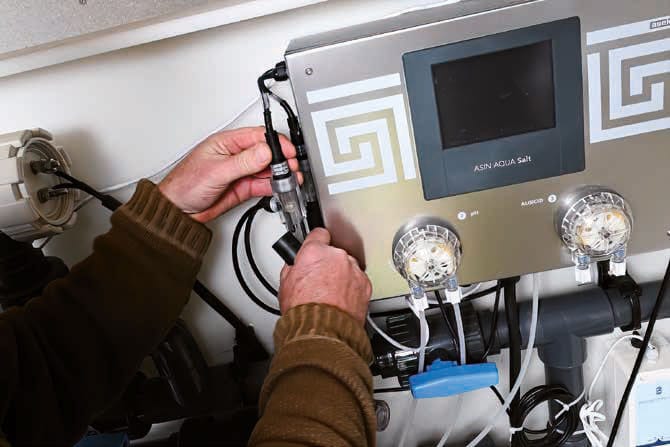 den er mindst 700 mV. Mål også alkaliniteten, og juster om nødvendigt. Tilsæt algedræbende middel ( også kaldet "vinterbeskyttelse til pools"). Dette forhindrer algedannelse ved temperaturer over 10 grader om foråret. Når ovenstående værdier er justeret, bør du lade cirkulationspumpen køre i yderligere 4 timer og derefter måle værdierne igen.