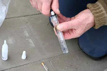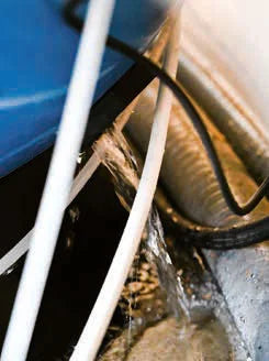 Skru en af tilslutningerne på tryksiden efter pumpen af (for eksempel hvor elektrolysen er tilsluttet saltklorinatoren ), og sørg for, at alle ventiler er åbne (dvs. peger langs røret). Luk ventilen, der går til sandfilteret. Drej støvsugerslangen, så den i stedet presser luft ind i røret. Når du begynder at presse luft ind, vil alt vandet i røret blive presset ind i indløbet og ud i poolen.