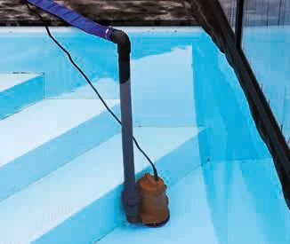 Sænk vandstanden med en dykpumpe, indtil vandstanden er under indløbet. Hvis du har en jet-swim, bør niveauet sænkes til under dette.