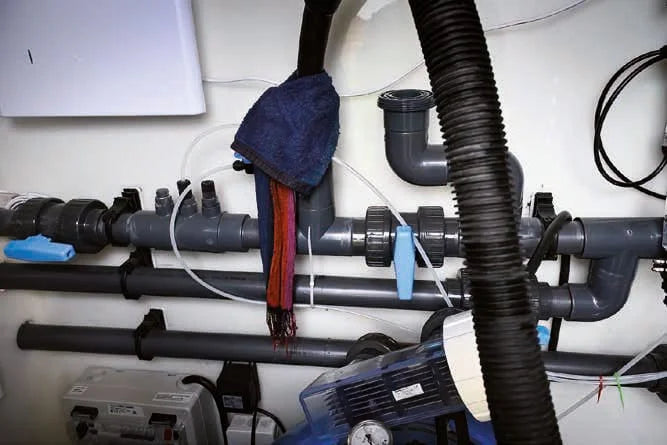 For at lukke pumpeskabet for vinteren kan ovenstående vinterlukning anvendes. For pumperum placeret under jordniveau skal kugleventilen (placeret lige før poolens indløb) lukkes, så der ikke kan strømme vand ind. Hvis du har en Jetswim, skal du også lukke kugleventilerne til den og tømme rør og pumpe for vand.