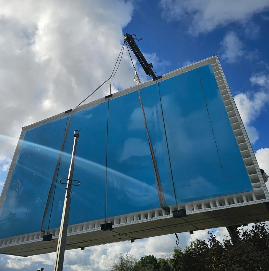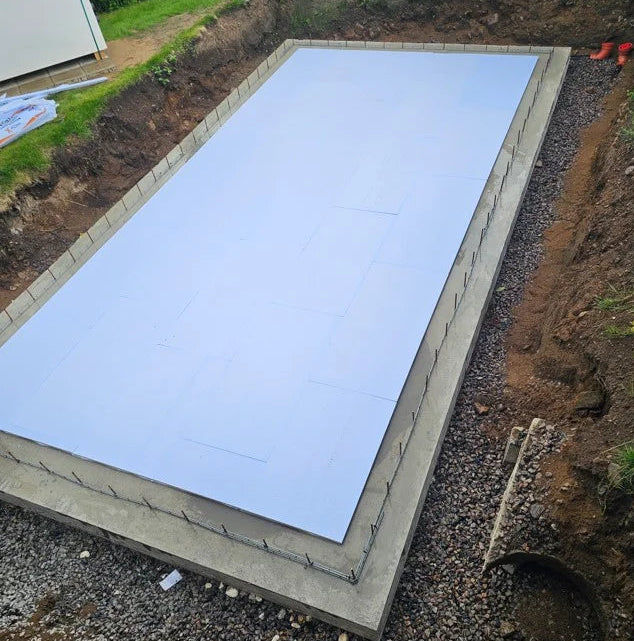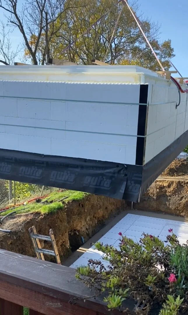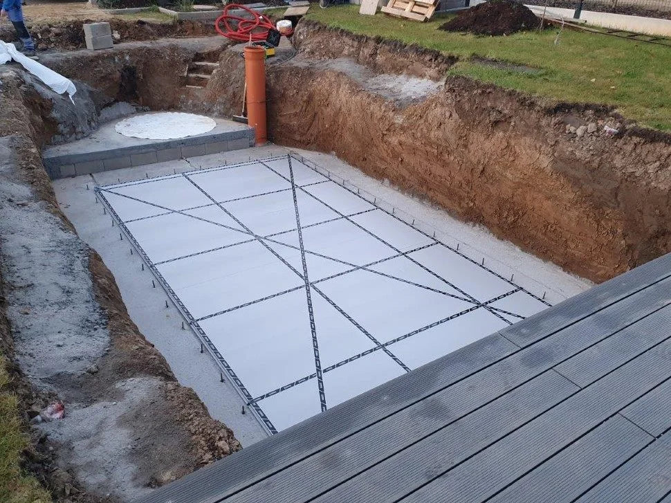 ThermoPP-poolen fyldes med flydende beton på siderne ligesom en almindelig termopool. Dette gør poolen til en betonpool, der er absolut den mest stabile, du kan få, og som holder længst af alle typer pools uden at ruste eller rådne.