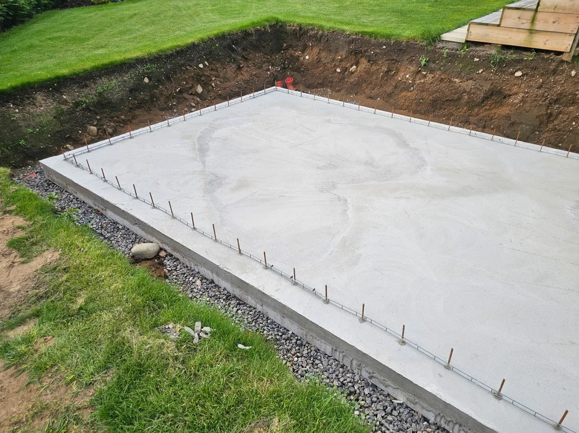 1. Du graver et hul og lægger dræn ned og støber en plade.