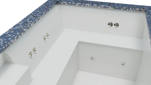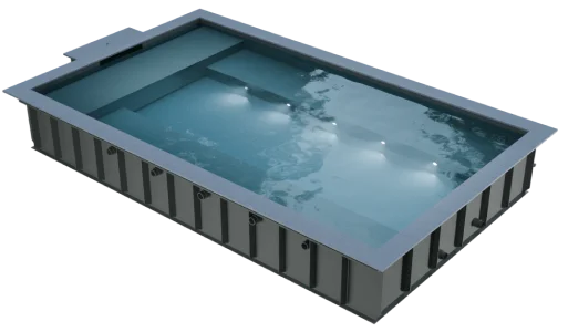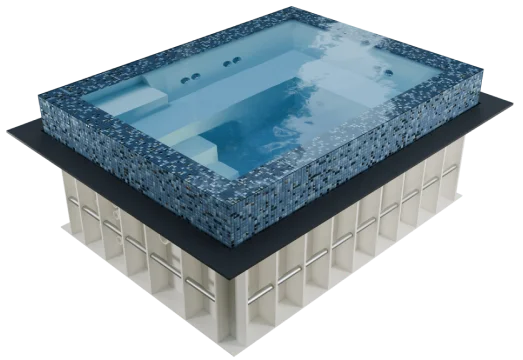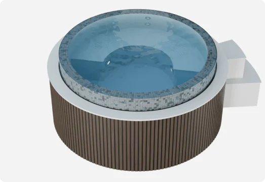 - En wellnesspool kan fremstilles og installeres som en separat model eller kombineres med en swimmingpool som én enhed. Store modeller af wellnesspools til kommerciel brug kan designes og fremstilles på forespørgsel.