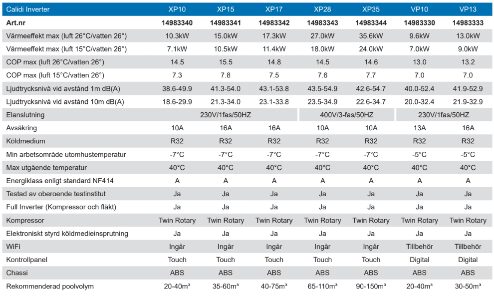 Pahlén poolvärmepump Calidi XP & Calidi VP De