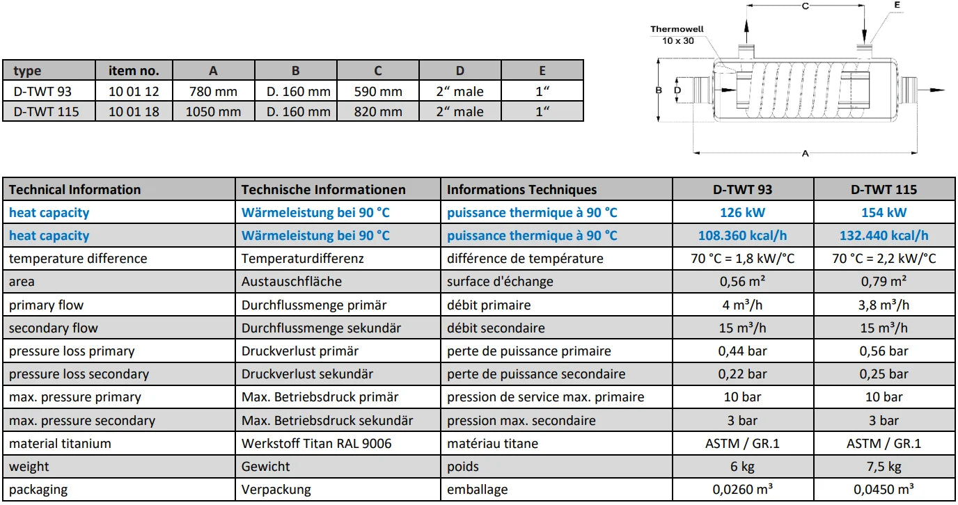 Vand/vand-varmevekslere, behandlet med sædvanlig førsteklasses håndværk og omhu, state-of-the-art svejsning. Denne førsteklasses varmeveksler har kompromisløs korrosionsbestandighed, selv ved høje saltniveauer i poolvand, og er derfor saltvandstæt. Disse varmevekslere tilbyder maksimal energieffektivitet ved minimalt tryktab. Som alle rørvarmevekslere skal de integreres i swimmingpoolens vandkredsløb enten direkte eller via bypass-systemet.